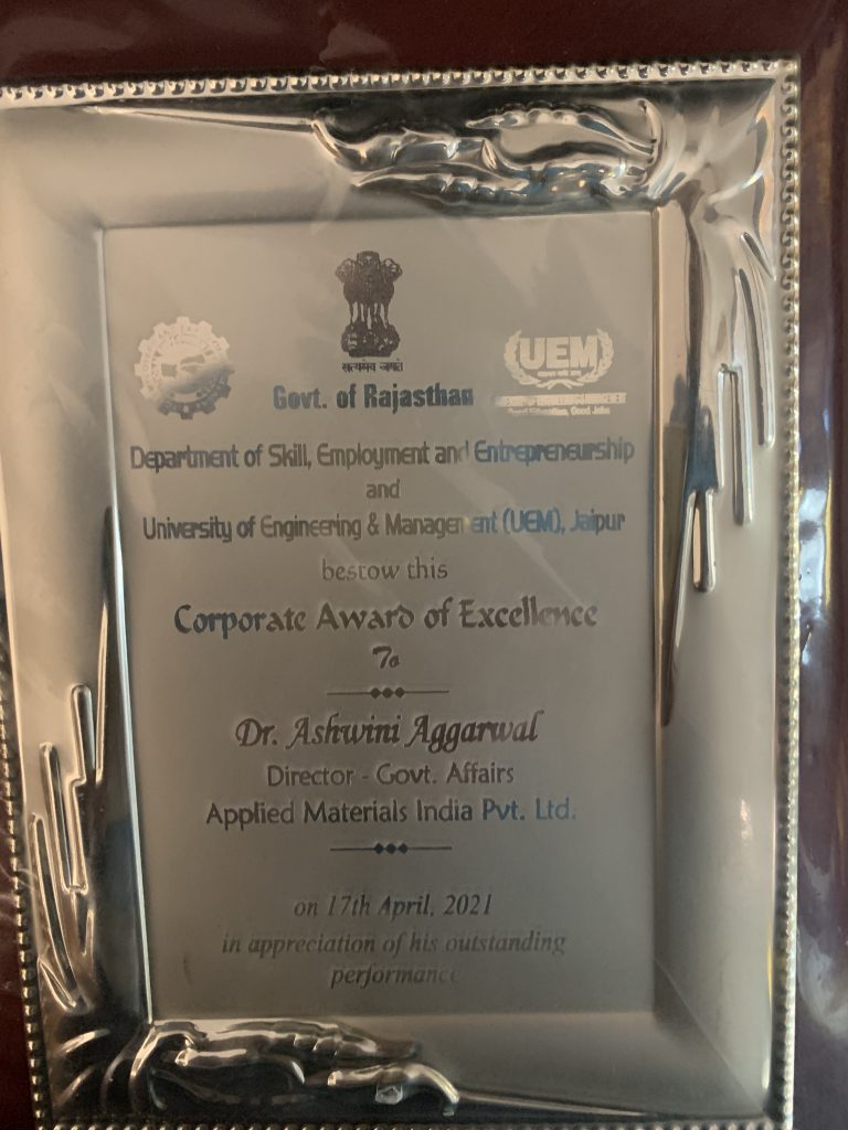 Received an accolade for my work with ESSC from Rajasthan State/ UEM Jaipur.