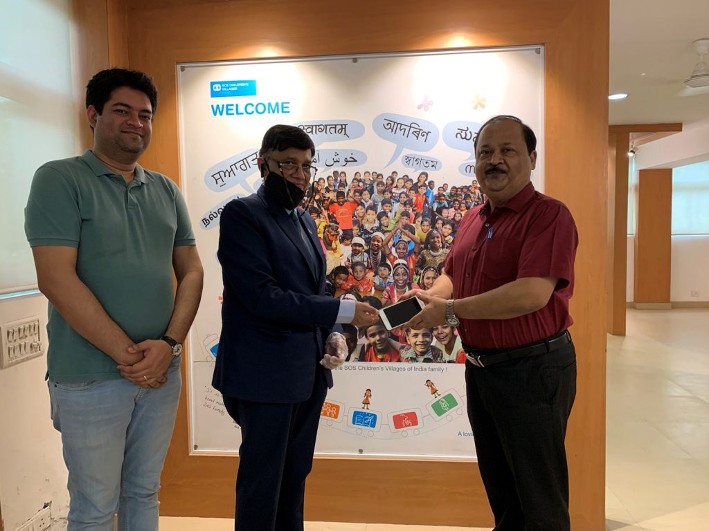 17th July 2021 – Handing over iPhone 6plus to Mr Amaranth Sarmah, SOS Children’s Village, Faridabad ( with Jit Banerjee – aspiring SoS volunteer) & Priscilla (not in picture)!